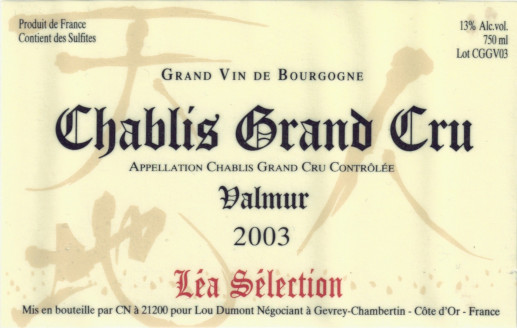| 名称: | Chablis Grand Cru Valmur Léa Sélection |